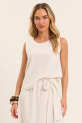 Blusa sem Manga em Plano Marant Linen, charmosa e versátil. O tecido leve em linho proporciona conforto e sofisticação, ideal para os dias quentes. Com corte clean e caimento fluido, valoriza a silhueta de forma natural.