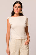 A Blusa com amarração em ribana é a união do estilo clean com um toque surpreendente. Com decote canoa e mangas curtas, ela oferece conforto e modernidade. A amarração frontal finaliza com charme único.