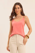Blusa regata com regulagem nas alças, tecido plano com elasticidade. Modelagem mais solta ao corpo, decote V.