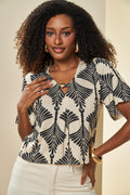 Blusa Estampada Boho com Decote em V e Detalhe em Argola