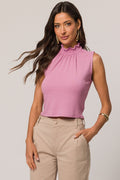 Blusa sem manga em malha New Favo com gola alta Preço promocional