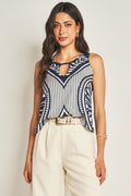 Disponíveis nas cores 02 e 3674, com padronagem geométrica.