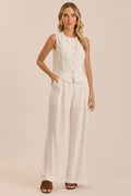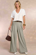Calça com modelagem reta, confeccionada em plano viscoflow, com recortes frontais, bolsos funcionais e elástico na cintura para maior conforto.
