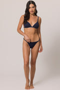 A calcinha de biquíni em jacquard tela traz visual moderno com listras sutis. A modelagem média com laterais estreitas valoriza o corpo com charme. Perfeita para dias de sol com conforto.
