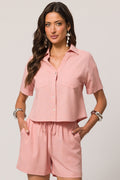 Camisa curta em tela linen com caimento reto