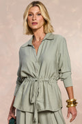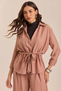Camisa com abertura nos punhos, amarração na cintura e fechamento em botões frontais. Ideal para looks de trabalho e ocasiões diversas.