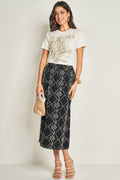 Saia Longa Bordada em Viscose com Estampa Geométrica