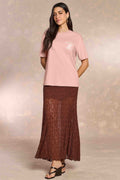 Saia longa em renda delicada, com textura marcante e acabamento fluido que traz leveza e movimento. Possui cós confortável que se ajusta ao corpo com elegância, valorizando a silhueta sem marcar. A transparência sutil da renda cria um visual feminino e sofisticado, ideal para composições versáteis que transitam do casual chic ao elegante.