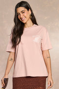 T-shirt confeccionada em meia malha macia com toque suave e caimento confortável. Possui modelagem oversized, mangas curtas e gola careca com acabamento canelado, garantindo um visual moderno e descomplicado. Versátil e atual, é perfeita para composições casuais com jeans, alfaiataria leve ou sobreposições.