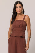 O Top de alça em plano tencel com franzido é puro encanto para dias ensolarados. Com alças largas e modelagem fluida, ele valoriza o colo e garante frescor com elegância.