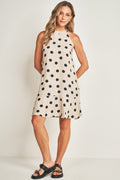 Encante com o vestido curto sem manga em viscose leve. A modelagem fluida valoriza o movimento com charme. O fechamento em botões e decote frente única compõem um visual fresco e encantador.
