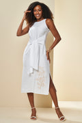 Vestido Midi Celebration com Amarração Frontal e Bordado Discreto