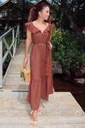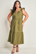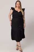 Vestido midi com babado e cinto