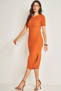 Vestido Midi de Manga Curta em Ribana Preço promocional