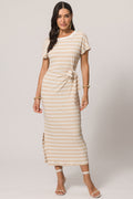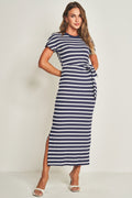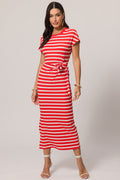 Vestido midi de manga curta em ribana com listras