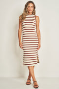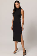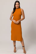 Vestido midi em ribana com gola padre