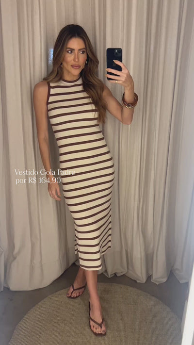Vestido midi em ribana com gola padre